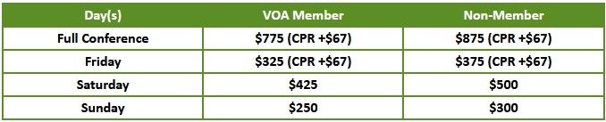 Registration includes courses, meals, and events provided on each day with. If paying by check, you will receive a $25 discount on your total.